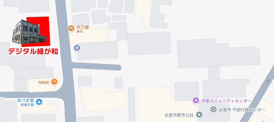 | 場 所 | デジタル縁が和‐出雲市平田町991-12 (旧島根銀行平田支店) 平田行政センター西側 入口向かい |